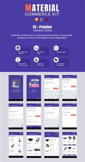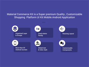 Material Commerce UI Kit是超优质,可定制的购物平台移动Android应用程序