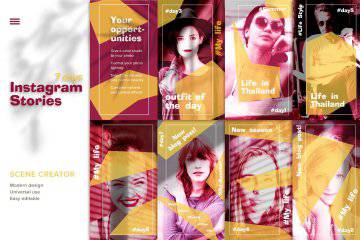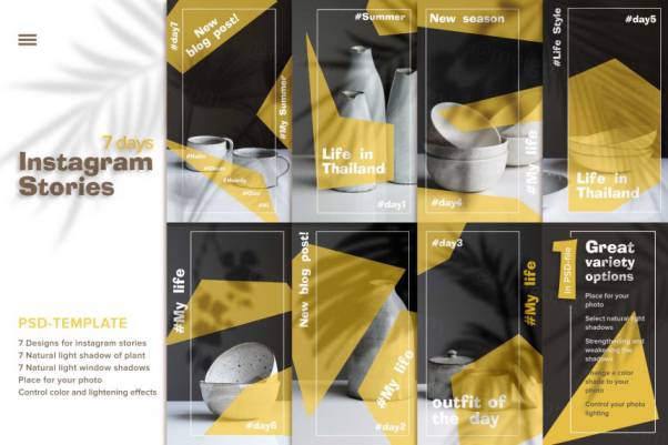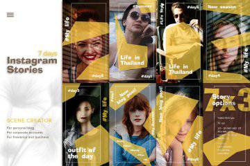 图穷联素材库 » 7天Ins朋友圈海报版式PSD模板素材 7 days Instagra
