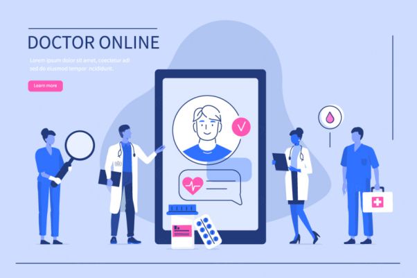 图穷联素材库 » 在线医疗关注健康扁平化网页插画