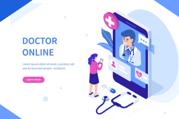 图穷联素材库 » 在线医疗扁平风格蓝色关注健康网页模板