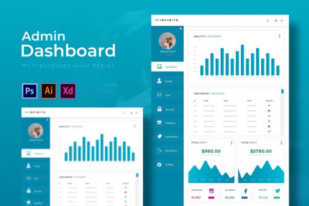 图穷联素材库 » 大数据后台管理仪表盘下载 (PSD,Ai,XD)