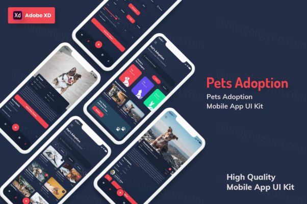 图穷联素材库 » 宠物领养移动应用APP UI KITS深色版(XD)