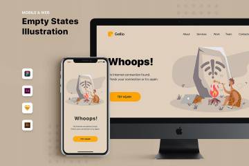 图穷联素材库 » 时尚高端简约扁平化风格的错误状态插图UI banner海报设计模板集合