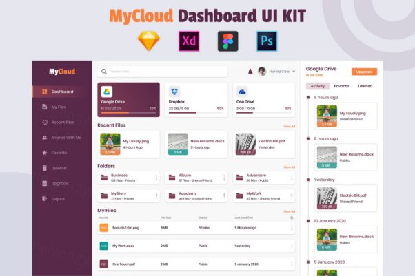 云端管理仪表盘界面UI模板下载(Sketch,XD,Fig,PSD)