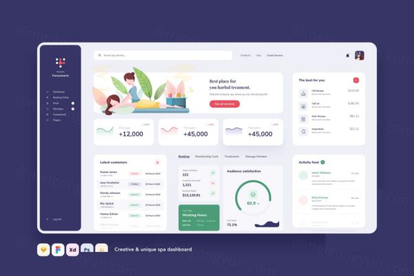 图穷联素材库 » SPA水疗中心服务网站后台仪表板UI模板下载(Sketch,XD,Fi