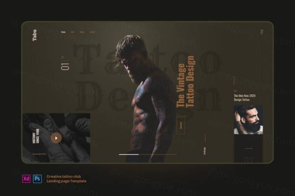 图穷联素材库 » 高品质创意纹身俱乐部登陆页面模板banner设计模板(XD,PSD)