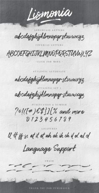 Lismonia是一种带有笔刷的签名样式字体,该字体非常适合创建标志,横幅,书法海报甚至徽标。