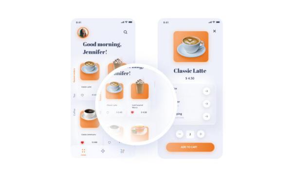 图穷联素材库 » 新拟态咖啡外送移动APP UI界面设计素材 Xd Neumorphic