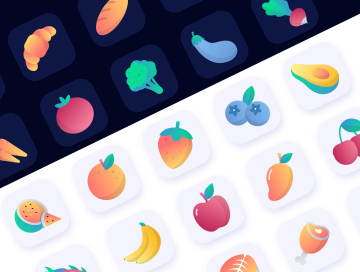 图穷联素材库 » 40个水果蔬菜食物图标合辑 Babuko - Icon Illustr