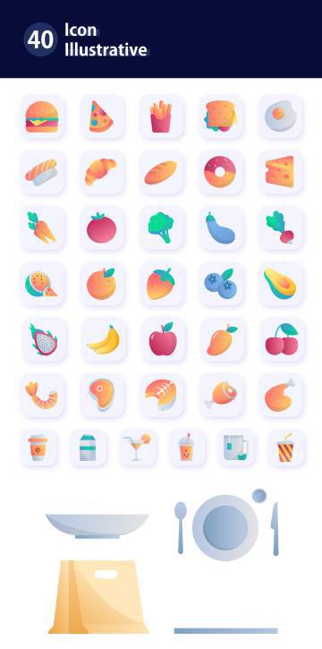 40个水果蔬菜食物图标合辑 Babuko - Icon Illustr