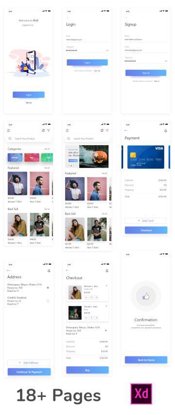您好,这是Bolt电子商务AppUi套件。您将获得18+页。
