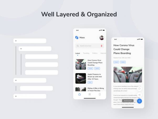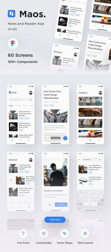 图穷联素材库 » 高品质新闻阅读订阅移动APP程序UI界面素材 Maos - News
