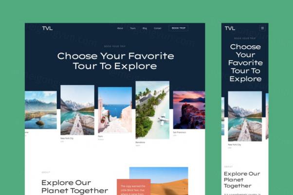图穷联素材库 » 旅行响应网站着陆页模板下载(FIG,SKETCH,XD)