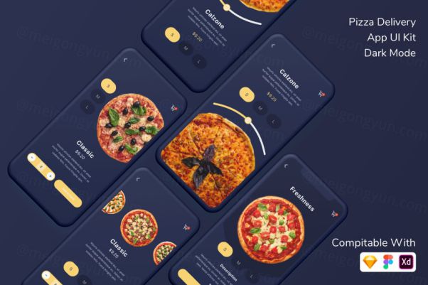 图穷联素材库 » 披萨递送应用程序UI-Kit黑暗模式