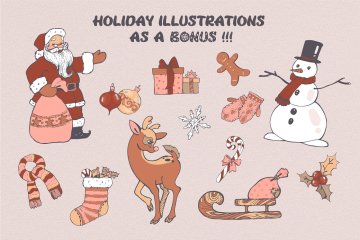 让我介绍一下SNOWFLAKE-可爱字体家族,插图和预制贺卡的圣诞节集合。