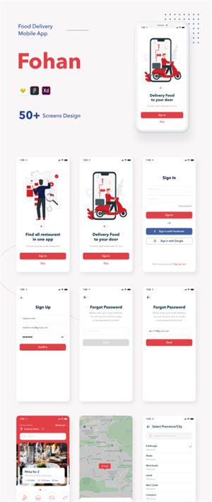 图穷联素材库 » 快餐外卖订餐支付外送移动APP程序UI界面素材 Fohan - Foo