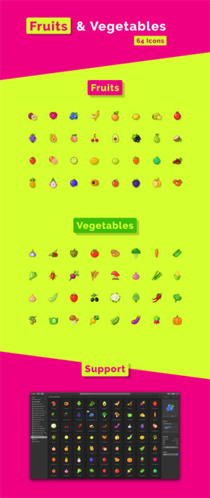 最受欢迎的水果蔬菜图标素材合集包 Fruits Vegetables