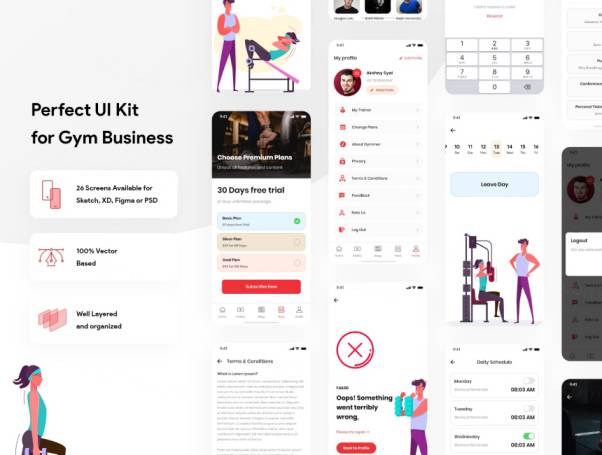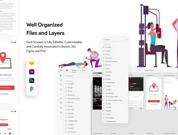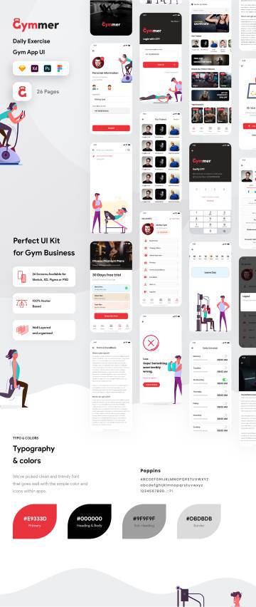 图穷联素材库 » 高质量健身房健美场所移动APP程序UI界面素材 Gymmer UI K
