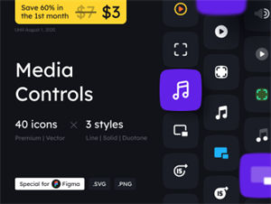 40个多媒体控件图标集 Media Controls Icon Set
