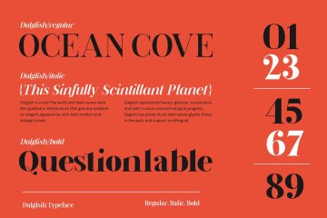 Dalglish字体是一种字体。衬线和简洁的曲线使字体具有精致的外观,可以使任何标题都具有优雅的外观,包括现代和复古曲线。Dalglish Typeface代表着对社会和技术进步的奢华,魅力,旺盛和信念。Dalglish Typeface的灵感来自19世纪法国的装饰艺术设计风格和海报设计。Dalglish字体在包装中有很多替代字形可供选择。除了这些替代方案之外,该产品包还包括三种不同的风格替代方案,分别是常规,斜体,粗体和支持多语言。