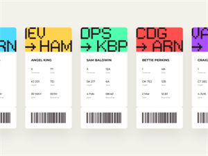 具有简约设计风格的数字登机牌,其中列出了乘客的姓名以及航班详细信息。Olga Chernenka做得很好!
