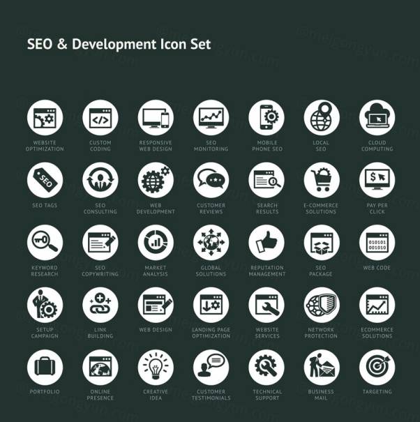 图穷联素材库 » 9现代风的SEO网站优化图标下载 [AI].jpg