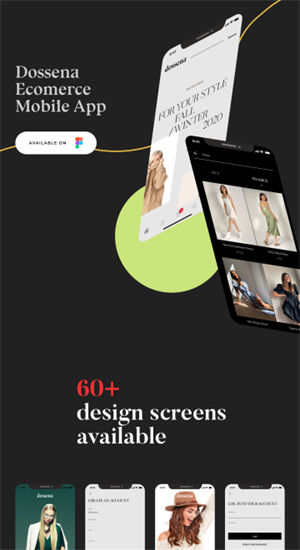 Dossessna是专为ecmmerce设计的移动应用程序模板,特别是时装商店