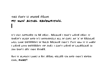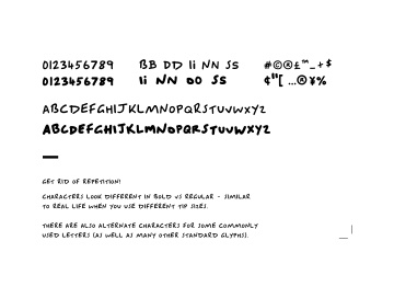一种“不完美”的全大写手写字体。由实际笔迹制成。不完美和现实。一些常用字符以及标准字形的替代字母。