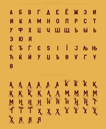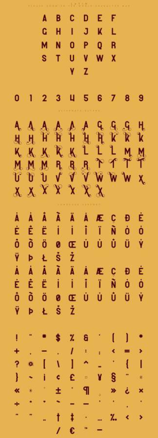 Kompot Sans是漩涡状的复古字体,具有2种样式,可为您的下一个项目增添魅力。它们已加载备用字形和多语言支持。用途非常广泛的字体,无论大小都适用。支持基本拉丁语,高级拉丁语,基本西里尔字母和高级西里尔字母字符集!