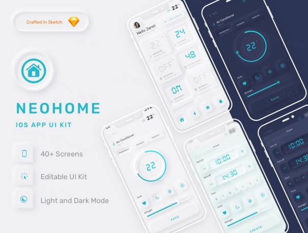NeoHome UI KIt将帮助您和您的客户创建很棒的体验和产品。该应用程序是专为iOS设备和iPhone 11/11 Pro Max尺寸设计的。该文件针对可编辑的UI套件,元素和组件的符号进行了优化,以实现快速的设计过程,而且还通过使用SF符号和Apple的人机界面指南进行了轻松开发。