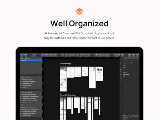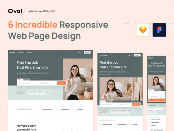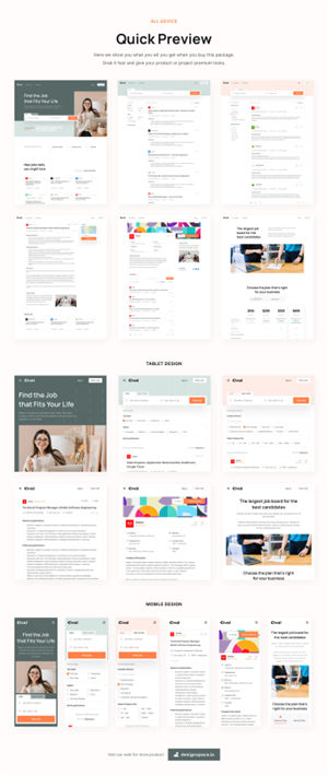 在此Job Finder模板中,您将在3种设备设计(台式机,标签和移动设备)中创建所有设计。查看预览以了解详细信息。