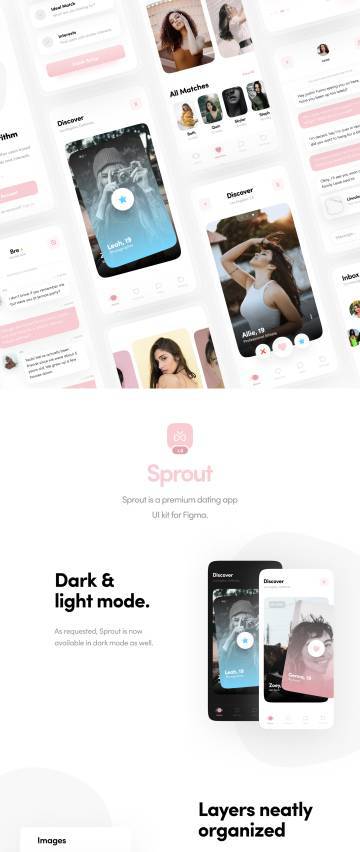 Sprout是专为Figma设计的高级约会应用程序UI套件。