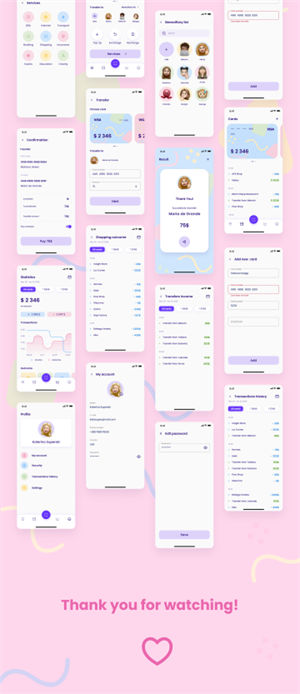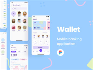 图穷联素材库 » 粉色系女性专属移动钱包iOS手机银行APP应用UI界面素材 Walle