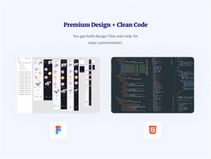 该软件包分为2部分:设计+代码。Figma包含带有可编辑3D插图的设计源文件。代码文件包括HTML,CSS,JS,+ SASS和Pug模板。