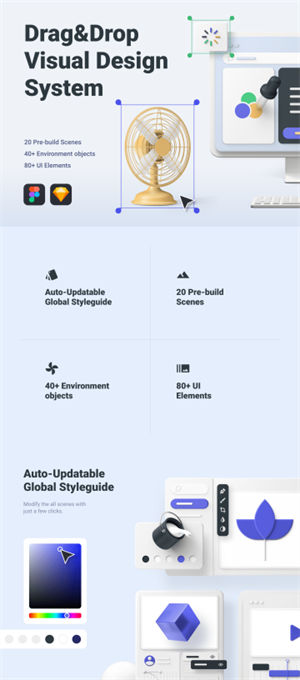 Bento是第一个完全可编辑的3D视觉设计系统,具有在Figma和Sketch中内置的全局自动更新样式指南。