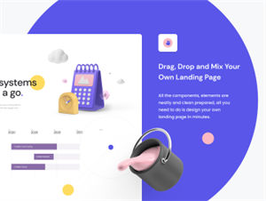 该软件包包括一个具有24个部分的响应式,完全动画化的着陆页模板。我们有意添加了许多不同的内容,以最大化布局选项的数量。拖放,混合不同部分,可在几分钟之内快速构建您的登录页面。
