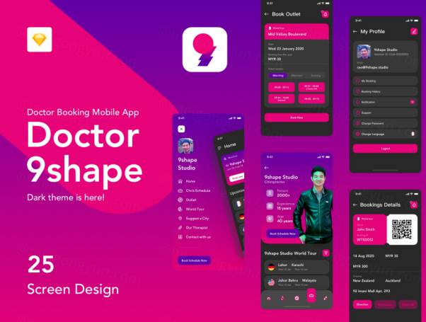 Dark 9shape Doctor是个人医生预订应用程序,此应用程序可帮助患者预订医生时间表。
