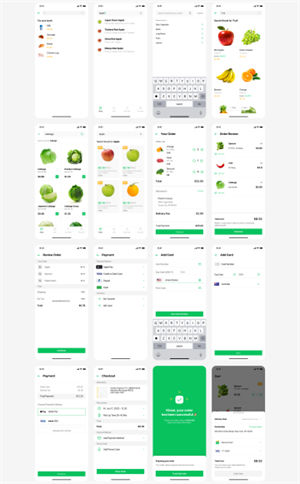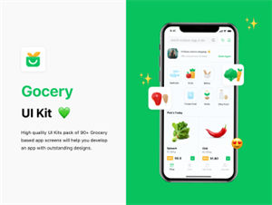 图穷联素材库 » 高质量超市蔬菜在线商店移动APP界面UI素材 Gocery - Gro