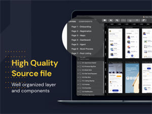 每个屏幕都设计得简单而引人注目。它包括基于矢量的完全可自定义的组件。我们使用8px设计网格来确保每一步的精确执行。所有层均组织良好,可加快您的设计过程。