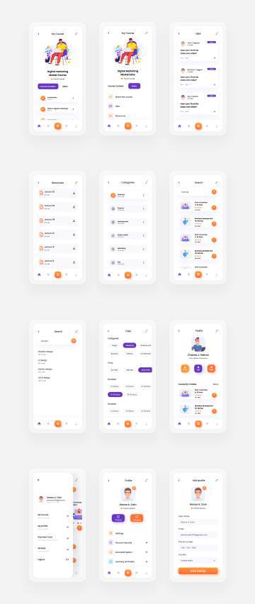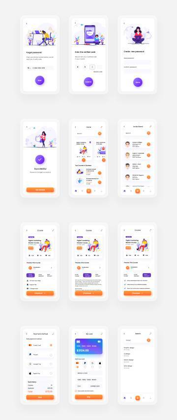 图穷联素材库 » 高质量在线培训网络课堂移动APP应用UI界面素材 Horbax Onl