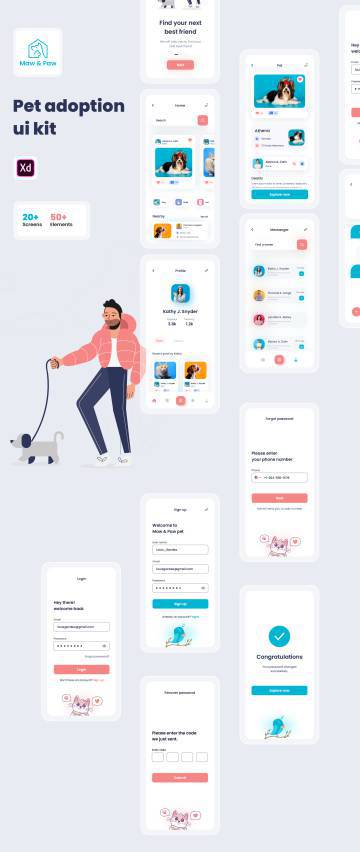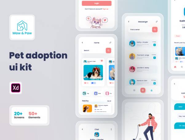 时尚简约的宠物收养寄养平台移动APP界面UI素材 Maw Paw P