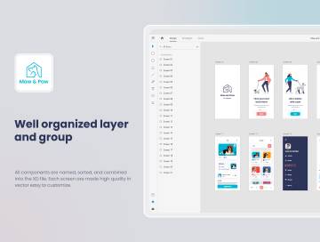Maw&Paw是一款采用时尚简洁风格的宠物收养应用程序UI套件,其中包含20多种适用于iOS的高质量屏幕,可以使用iPhone X屏幕尺寸(375px X 812px)。