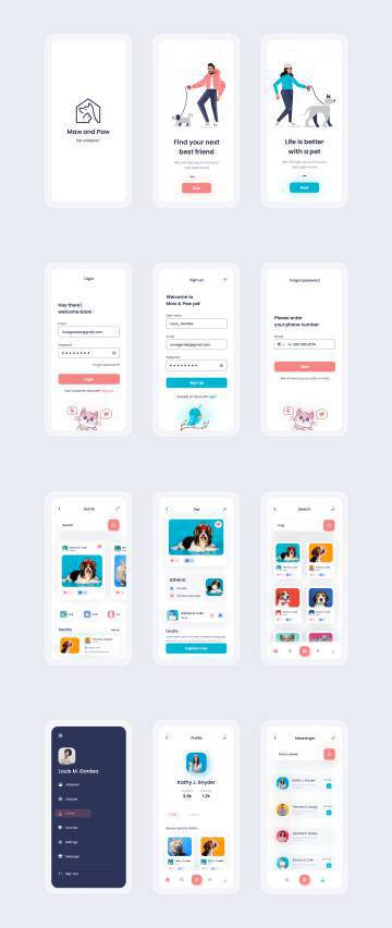 图穷联素材库 » 时尚简约的宠物收养寄养平台移动APP界面UI素材 Maw Paw P