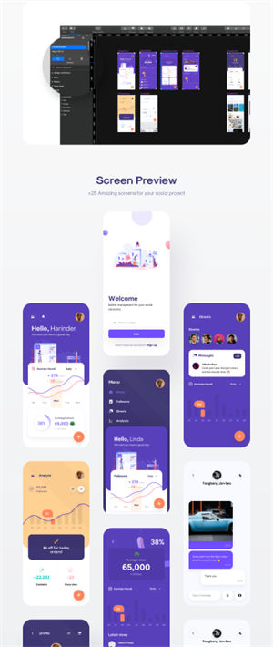 图穷联素材库 » 时尚前卫的移动社交平台界面UI素材 Octapa UI Kit