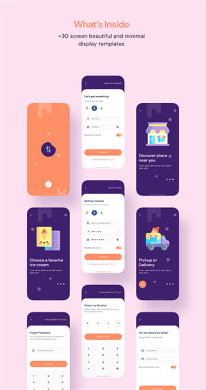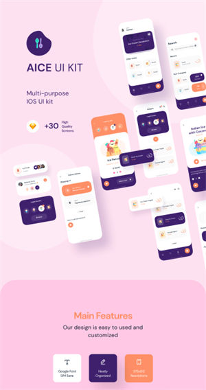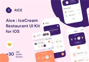 冰淇淋奶茶餐厅在线销售APP应用程序界面UI素材 Aice UI Ki