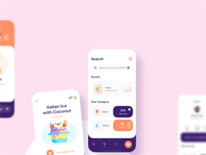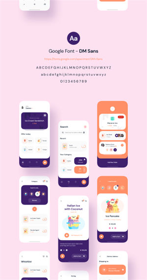 图穷联素材库 » 冰淇淋奶茶餐厅在线销售APP应用程序界面UI素材 Aice UI Ki