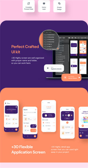 每个屏幕都设计得简单而引人注目。它包括基于矢量的完全可自定义的组件。我们使用8px设计网格来确保每一步的精确执行。所有层均组织良好,可加快您的设计过程。