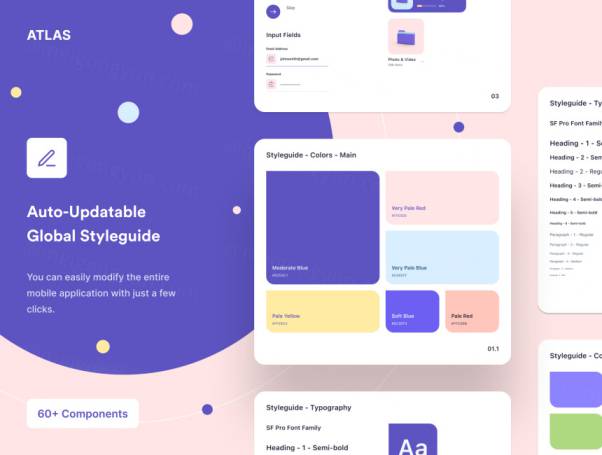 对于我们来说,该UI套件是移动应用程序开发人员更快地启动其新应用程序的绝好机会,因为我们已经完成了设计。我们还提供了一个自动更新的全局样式指南,您只需单击几下即可使用它来修改整个移动应用程序。不仅如此,我们还在Sketch&Figma中添加了所有必要的调整大小约束,并且您几乎可以根据自己的喜好轻松调整画板的大小。如果要查看设计在不同iOS设备上的外观,这将非常有用。
