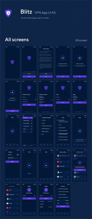 图穷联素材库 » 虚拟专用网络VPN移动APP应用界面UI素材 Blitz VPN Ap