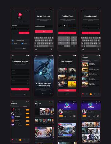 图穷联素材库 » 在线直播游戏Streaming移动APP应用UI界面素材 Climax